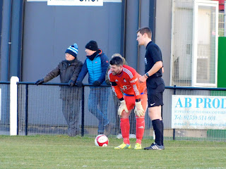 Hornby collected a 25 yard drive by the elusive Hickey, Foster lunged in on Barlone to suggest that the skirmish was about to become a rumble. Robbins was tripped, an advantage was played which didn’t materialise and the referee offered Barwell a free-kick for another offence. Weird. Robbins was clearly frustrated by the lack of offense engendered by his colleagues and he was soon flagged offside on the left but thrashed a shot at Castle anyway, who beat the ball away with aplomb. The referee cautioned the aghast Robbins… The official lectured a number of players for slight misdemeanours and this became really boring for players and frozen spectators alike, for he was giving an impression of indecisiveness, which none of us appreciated. Perhaps he was asking for more fight? OK, maybe not…